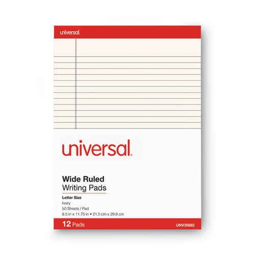 Colored Perforated Ruled Writing Pads, Letter Size Pad (8.5 x 11.75), Wide/Legal Rule, 50 Ivory 8.5 x 11 Sheets, DozenColored Perforated Ruled Writing Pads, Letter Size Pad (8.5 x 11.75), Wide/Legal Rule, 50 Ivory 8.5 x 11 Sheets, Dozen