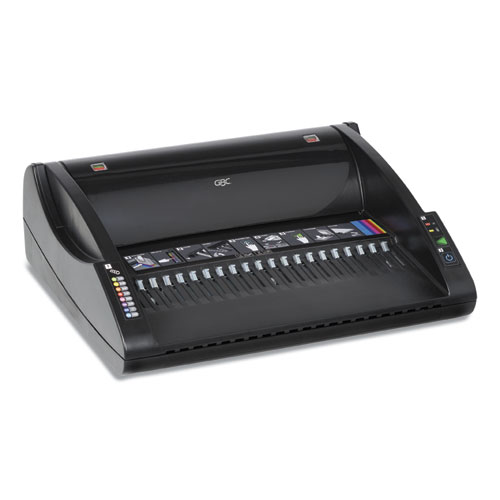 2-in-1 electric binding: uses both traditional CombBind® and editable ZipBind® spines. QuickStep instructions are easy to follow ensuring simple operation. Color-coded document size guide helps determine the correct spine size quickly. One-touch electric punching up to 15 sheets with the push of a button. Includes comb selection guide and adjustable edge guide to make perfect binding of up to 330 sheets a snap.