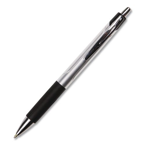 Product Details** Global Product Type Ballpoint Pens Pen Style Retractable Pen Tip Type Conical Pen Point Size Type Medium Color Family Black Erasable Ink No Refillable No Pen Sub-Brand & Product Family Comfort Grip® Pen Type Ballpoint Pen Pen Point Size 1 mm Pen Ink Color(s) Black Pen Barrel Color(s) Silver/Black Airplane-Safe Ink Yes Low-Viscosity Ink No Pen Grip Type Rubber Visible Ink Supply No Pocket Clip Indicator Yes Product Biodegradability in Days 0 Pre-Consumer Recycled Content Percent 0% Post-Consumer Recycled Content Percent 0% Total Recycled Content Percent 0% Country Of Origin IN Carton Weight 23 lbs. Carton Pack Quantity 72 DZ Pack Quantity 0 UPC 087547155400 UNSPSC 60121524 Shipping Weight & Item Dimensions Weight 0.28 lbs. Length 5.75 in Height 1.06 in Width 2.75 in Warranty Manufacturer’s limited one-year warranty.