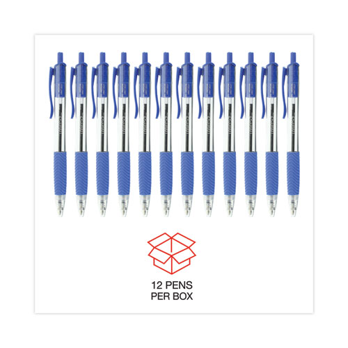 Comfort Grip Ballpoint Pen, Retractable, Medium 1 mm, Blue Ink, Clear/Blue Barrel, Dozen