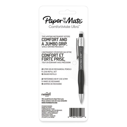 Product Details** Global Product Type Mechanical Pencils Retractable Yes Eraser (Yes/No) Yes Color Family Black Numeric Graphite Scale #2 HB Graphite Scale HB Refillable Yes Graphite Color(s) Black Pencil Barrel Color(s) Assorted Pencil Barrel Color Assortment Blue,Red Pencil Barrel Material Plastic Pencil Grip Type Contoured Rubber Graphite Diameter 0.7 mm Pocket Clip Indicator Yes Mechanical Pencil Advance Type Top-Advance Mechanical Pencil Sleeve Type Sliding Sleeve Product Biodegradability Indicator N Product Biodegradability in Days 0 Product Compostability Indicator N Compliance Standards Box Tops for Education Pre-Consumer Recycled Content Percent 0% Post-Consumer Recycled Content Percent 0% Total Recycled Content Percent 0% Country Of Origin CN Carton Weight 7 lbs. Carton Pack Quantity 48 ST Pack Quantity 2 EA UPC 071641615076 UNSPSC 44121705 Shipping Weight & Item Dimensions Weight 0.094 lbs. Length 7.62 in Height 0.62 in Width 3.75 in
