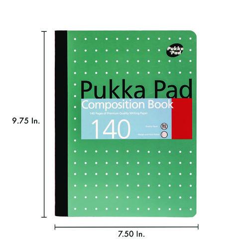 Product Details** Global Product Type Composition Books Pocket Sized No Book-Binding Type Taped Color Family Multicolor Number of Subjects/Sections 1 Sheet Size (Bound-Side First) 9.75 x 7.5 Sheet Rule/Format Type Medium/College Rule Book-Binding Details Taped: Flexible Cover Book-Binding Edge Side Cover Design/Theme Dots Cover Color Metallic Green/White Book-Spine Length 7.48″ Book Width 9.72″ Front-Cover Material Card Back-Cover Material Card Sheets per Book/Journal 70 Sheet Color White Sheet Ruling Size 8 mm Note-Rule Lines per Sheet 28 Sheet-Ruling Color Blue Sheet Basis Weight (lb) 21 lb Bond Dated No Product Biodegradability Indicator N Product Biodegradability in Days 0 Product Compostability Indicator N Pre-Consumer Recycled Content Percent 0% Post-Consumer Recycled Content Percent 0% Total Recycled Content Percent 0% Disclaimer Statement This product was made using wood sourced from a certified managed forest. Footnote 1 Paper Weight (gsm): 80 gsm Country Of Origin CN Carton Weight 33 lbs. Carton Pack Quantity 12 PK Pack Quantity 4 EA UPC 000000000000 UNSPSC 14111514 Shipping Weight & Item Dimensions Weight 2.64 lbs. Length 7.41 in Height 1.435 in Width 9.633 in