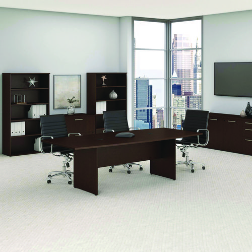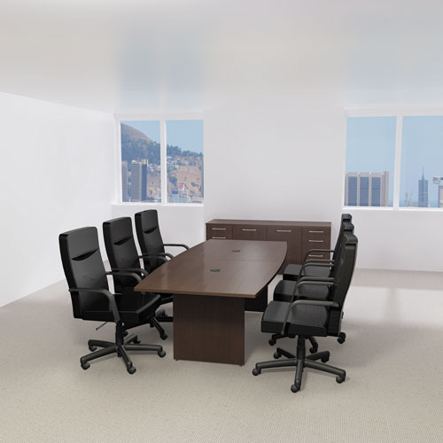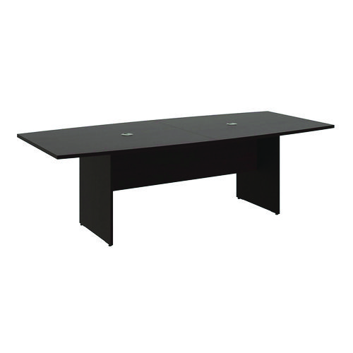Product Details** Global Product Type Conference Tables Top Shape Boat Color Family Cherry Maximum Weight Capacity Supports up to 200 lbs evenly distributed Overall Width 42″ Height (Max) 28.65″ Base Color Mocha Cherry Top Color Mocha Cherry Top Thickness 2.54″ Overall Depth 95.19″ Top Material Thermal Fused Laminate,Wood Base/Leg Material Laminate,Wood Edge Detail Profile Edge Banding Product Biodegradability Indicator N Product Biodegradability in Days 0 Product Compostability Indicator N Compliance Standards Meets or Exceeds ANSI/BIFMA Standards Pre-Consumer Recycled Content Percent 0% Post-Consumer Recycled Content Percent 0% Total Recycled Content Percent 0% Country Of Origin US Carton Weight 151 lbs. Carton Pack Quantity 2 EA Pack Quantity 0 UPC 042976600051 UNSPSC 56101519 Shipping Weight & Item Dimensions Weight 151 lbs. Length 95.197 in Height 28.653 in Width 42.008 in Warranty Manufacturer’s ten-year warranty.