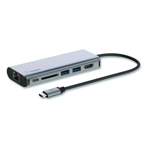 Easily connect your laptop to multiple devices with this USB-C 6-in-1 Multiport Adapter. This all-in-one solution expands your computer’s USB-C port into an HDMI port, 2 USB-A ports, Ethernet port, SD card reader, and USB-C PD port, giving you the ports newer laptops have eliminated in recent years. Plus, it supports pass-through charging up to 100 W, eliminating the need to choose between port expansion and power. The slim, compact, and travel-ready design of this USB-C 6-in-1 Multiport Adapter is ideal for those who have multiple workstations or looking to declutter their desk. Supports 4K resolutions and up to 5 Gbps of bandwidth for fast data transfer between laptop and peripheral devices.