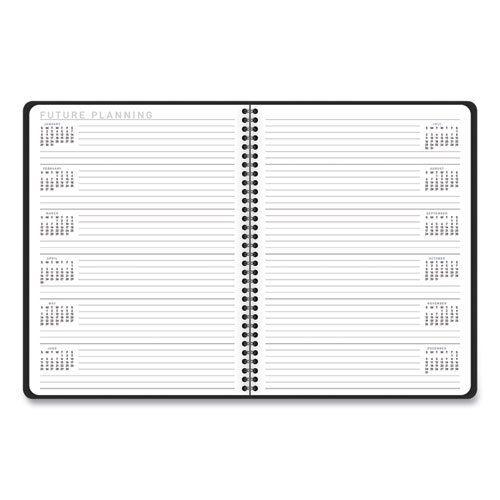 Product Details** Global Product Type Appointment Book/Personal Organizers Dated Yes Academic Year No Calendar Format Weekly/Monthly Edition Year 2026 Calendar Term 12-Month (Jan to Dec) Binding Type Wire-O Color Family Black Refillable No Calendar Spread Format One Week per Two-Page Spread,One Month per Two-Page Spread Julian Dates No Size (Bound-Side First) 11 x 8.25 Binding Details Twin-Wire Cover Color(s) Black Cover Material(s) Simulated Leather Page Theme Contemporary Lite Formatting Appointment Ruling Open Scheduling Calendar Reference Blocks Past Month,Current Month,Two Future Months Sheet Color(s) White Reversible No Seasonal Availability Yes Product Biodegradability Indicator N Product Biodegradability in Days 0 Product Compostability Indicator N Pre-Consumer Recycled Content Percent 0% Post-Consumer Recycled Content Percent 0% Total Recycled Content Percent 0% Country Of Origin VN Carton Weight 13 lbs. Carton Pack Quantity 12 EA Pack Quantity 0 UPC 038576407855 UNSPSC 44112005 Shipping Weight & Item Dimensions Weight 1.07 lbs. Length 10.875 in Height 8.625 in Width 0.625 in