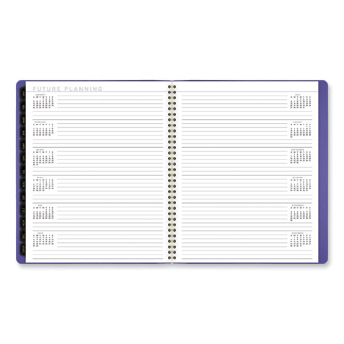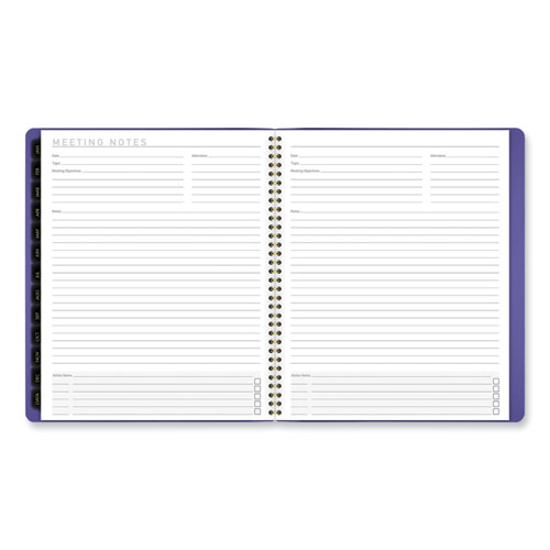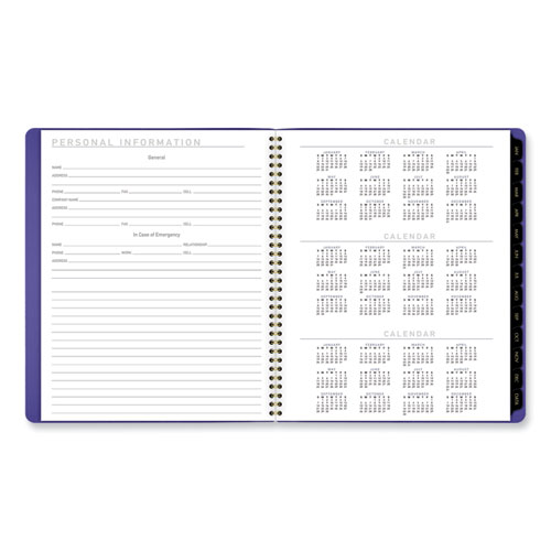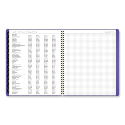 Product Details** Global Product Type Appointment Book/Personal Organizers Dated Yes Academic Year No Calendar Format Monthly Edition Year 2026 Calendar Term 12-Month (Jan to Dec) Binding Type Wire-O Color Family Purple Refillable No Calendar Spread Format One Month per Two-Page Spread Julian Dates Yes Size (Bound-Side First) 11.38 x 9.63 Binding Details Twin-Wire Cover Color(s) Purple Cover Material(s) Faux Leather Binding Color(s) Black Page Theme Contemporary Formatting Calendar Reference Blocks One Past Month,One Future Month Separate Sections Contacts,Future Planning Pages,General Notes Pages,Holiday List,Meeting Notes Pages,Personal Information Page,Three-Year Reference Calendar Sheet Color(s) White Pocket Details (1) Two-Sided Interior Storage Pocket Seasonal Availability Yes Age Recommendation Ages 12 and Up Product Biodegradability Indicator N Product Biodegradability in Days 0 Product Compostability Indicator N Pre-Consumer Recycled Content Percent 0% Post-Consumer Recycled Content Percent 0% Total Recycled Content Percent 0% Country Of Origin VN Carton Weight 9 lbs. Carton Pack Quantity 12 EA Pack Quantity 0 UPC 038576411326 UNSPSC 44112005 Shipping Weight & Item Dimensions Weight 0.75 lbs. Length 0.25 in Height 11.375 in Width 9.625 in