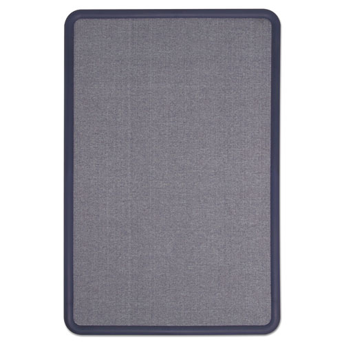 Highly durable fabric bulletin board surface backed by high-density fiberboard secures documents with push pins. Delivers quality performance when communication and collaboration is needed in frequent-use office environments. Self-healing surface eliminates unsightly pin holes and will not fade or crumble like traditional cork boards, even after years of use. Simple mounting system allows for vertical or horizontal installation. Contemporary, navy plastic frame and coordinating fabric surface energize displays and brighten rooms. Available in a variety of sizes and colors.
