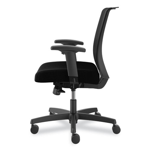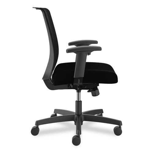 Product Details** Global Product Type Office Chairs Color Family Black Arms Included Yes Pneumatic Seat Height Adjustment Yes Tilt Tension/Tilt Lock Yes Integral Lumbar Support Yes Seat Surface Material Family Fabric Recommended Application Area(s) General Office & Task Seat Color Black Back Color Black Arm Type Padded T-Bar Weight Capacity Supports Up to 275 lb Back Height Adjustment No Seat Glide Mechanism Yes Knee Tilt No Synchronized Knee Tilt No Dual-Action Tilt No Posture Lock No Multi-Task Control No Asynchronous Control No Dual-Clutch Posture Control No Variable Synchro-Tilt No Arm Adjustability Height,Width Armrest Color Black Armrest Material Polyurethane Distance Between Arms 20″ Arm Height From Seat 10″ Overall Width Minimum 20″ Overall Width Maximum 27″ Overall Depth Maximum 29″ Overall Height Minimum 35.63″ Overall Height Maximum 40.13″ Seat Width Maximum 20″ Seat Depth Minimum 16.75″ Seat Depth Maximum 19″ Seat Height Minimum 16.5″ Seat Height Maximum 21″ Seat Surface Material Fabric Back Width Maximum 18″ Back Height Maximum 22″ Back Surface Material Mesh Back Surface Material Family Mesh Base/Frame Color Black Base/Frame Material(s) Plastic Caster/Glide Details Five Hooded Dual-Wheel Casters Compatible Flooring Type(s) Hard Flooring,Soft Flooring Weight (Fully Assembled) 33 lbs Product Biodegradability Indicator N Product Biodegradability in Days 0 Product Compostability Indicator N Compliance Standards Meets or Exceeds ISTA Performance Standards Pre-Consumer Recycled Content Percent 0% Post-Consumer Recycled Content Percent 0% Total Recycled Content Percent 0% Disclaimer Statement Casters supplied with this chair are not suitable for all floor types. Special Features Swivel-Tilt Control Country Of Origin US Carton Weight 40 lbs. Carton Pack Quantity 1 EA Pack Quantity 0 UPC 192535080104 UNSPSC 56101504 Shipping Weight & Item Dimensions Weight 40 lbs. Length 27 in Height 13.75 in Width 26 in Warranty Backed by the HON Full Lifetime Warranty