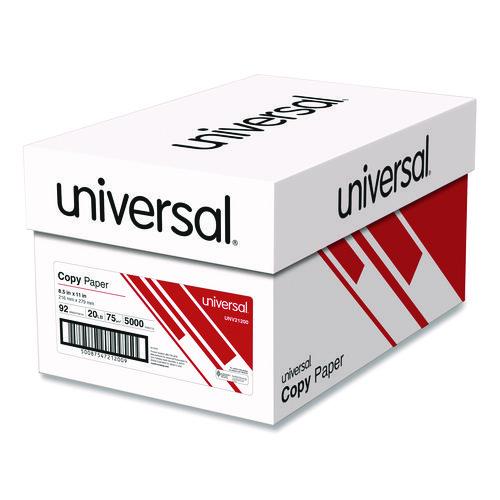 Product Details** Global Product Type Copy/Office Paper Sheets Sheet/Roll Size 8.5 x 11 Paper Basis Weight (lb) 20 lb Bond Color Family White Brightness Rating (US) 92 Paper Grade (gsm) 75 gsm Paper/Media Color(s) White Brightness Rating (International) 104 Machine Compatibility Copiers,Fax Machines,Laser Printers Sheets Per Unit 200,000 Interpack Paper Quantity 500 Sheets/Ream, 10 Reams/Carton, 40 Cartons/Pallet Product Biodegradability in Days 0 Pre-Consumer Recycled Content Percent 0% Post-Consumer Recycled Content Percent 0% Total Recycled Content Percent 0% Disclaimer Statement This product was made using wood sourced from a certified managed forest. Country Of Origin US Carton Weight 2100 lbs. Carton Pack Quantity 40 EA Pack Quantity 0 UPC 087547212004 UNSPSC 14111507 Shipping Weight & Item Dimensions Weight 2100 lbs. Length 54.25 in Height 35.3 in Width 46.5 in Warranty Manufacturer’s limited one-year warranty.
