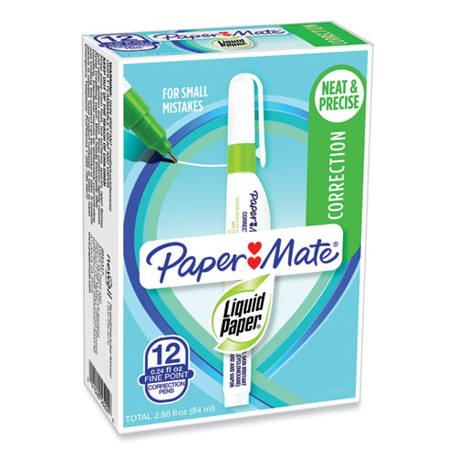 Make neat, detailed corrections to your documents with Paper Mate Liquid Paper All-Purpose Correction Pen. This pen dispenses the quick-drying fluid evenly and accurately with a gentle squeeze, giving you pinpoint control over your corrections. The precise double-ball tip prevents the liquid from clogging, making it ideal for correcting individual letters and numbers.