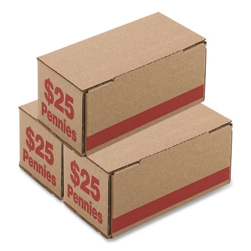 Product Details** Global Product Type Cash/Coin Security Boxes Material(s) Corrugated Cardboard Color(s) Brown/Red Cash Drawer/Box/Tray Type Box Denomination Pennies Money Tray Features Denomination Printed On Side Width 8.5″ Depth 4.38″ Height 3.63″ Maximum Number of Coins 2,500 Product Biodegradability in Days 0 Compliance Standards Meets ABA Standards Pre-Consumer Recycled Content Percent 0% Post-Consumer Recycled Content Percent 0% Total Recycled Content Percent 0% Country Of Origin US Carton Weight 22 lbs. Carton Pack Quantity 50 EA Pack Quantity 0 UPC 089243610016 UNSPSC 44111605 Shipping Weight & Item Dimensions Weight 22 lbs. Length 6.25 in Height 20.375 in Width 15.75 in Warranty Manufacturer’s one-year warranty.