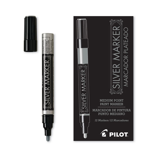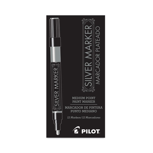 Product Details** Global Product Type Art Markers Marker Ink Type Permanent Marker Grade Artist Quality Marker Tip Type Brush Color Family Silver Marker Tip Size (text) Medium Marker Tip Size (numeric) 4.5 mm Marker Color(s) Silver Product Biodegradability Indicator N Product Biodegradability in Days 0 Product Compostability Indicator N Pre-Consumer Recycled Content Percent 0% Post-Consumer Recycled Content Percent 0% Total Recycled Content Percent 0% Country Of Origin JP Carton Weight 21 lbs. Carton Pack Quantity 432 EA Pack Quantity 0 UPC 072838418005 UNSPSC 44121708 Shipping Weight & Item Dimensions Weight 0.046 lbs. Length 5.75 in Height 0.6 in Width 0.6 in