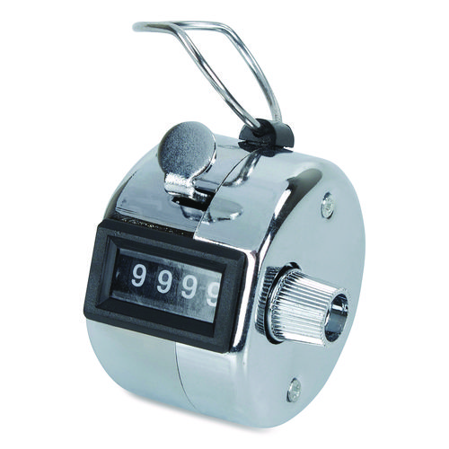 Keep track of crowd sizes with this hand tally counter. Compact size fits neatly in the palm of your hand. Simple push-button operation makes it easy to count every person who enters a building or special event. Reset knob brings the total count back to zero, creating a clean slate for every event. Goes up to 9999, making it a great option for bars, restaurants, and fundraisers.