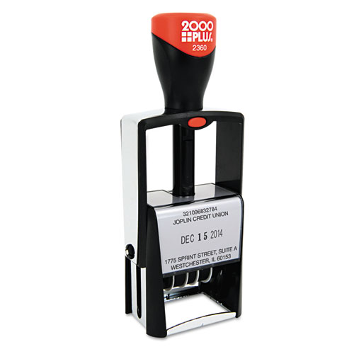 Ink pad is built right into the stamp—just press and print. Lasts for thousands of impressions. Perfect for fast, repetitive stamping. Six-year date band. Antimicrobial protection inhibits the growth of microbes such as stain and odor-causing bacteria on the stamp.