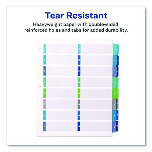 Product Details** Global Product Type Printed Numeric Index Dividers Index Divider Style Arabic Numeric Tab Orientation Side Tab Tab Style 16-Tab Color Family White Punched/Unpunched 3-Hole Punched Index Divider Size 11 x 8.5 For Use With Ring Binders Index Divider Material(s) Heavyweight Paper Index Divider Color(s) White Tab Material(s) Plastic Tab Color(s) Assorted Tab Title(s) 1 to 16 Tab Title Color(s) White Binding Edge Feature(s) Single-Sided Gold Plastic Edge Reinforcing Machine Compatibility Inkjet Printers,Laser Printers Index Divider Form Quantity 1 Set Product Biodegradability in Days 0 Pre-Consumer Recycled Content Percent 0% Post-Consumer Recycled Content Percent 0% Total Recycled Content Percent 0% Country Of Origin MX Carton Weight 5 lbs. Carton Pack Quantity 12 ST Pack Quantity 16 EA UPC 072782113209 UNSPSC 44122008 Shipping Weight & Item Dimensions Weight 0.355 lbs. Length 11 in Height 0.19 in Width 9.25 in
