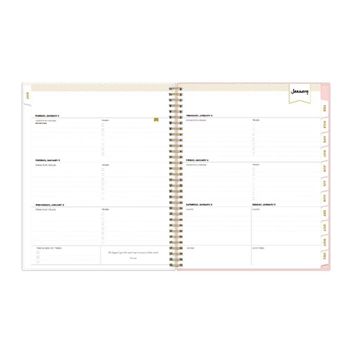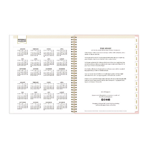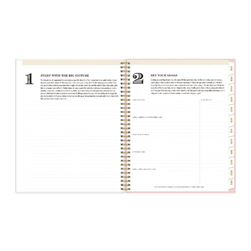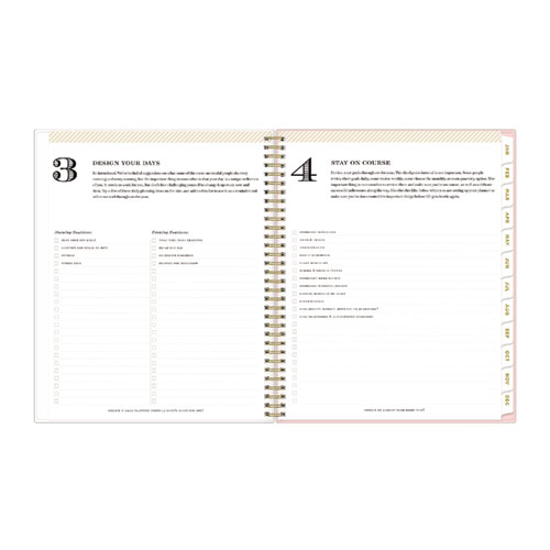 Day Designer planners offer both functionality and modern beauty to help you stay on track and focused throughout your busy days. Includes introductory letter from Whitney English, worksheets for personal goals and intentions, dated calendars, yearly overviews, holidays and notes. This smart, stylish, unique planning system features the Coming Up Roses cover with cream roses on a blush background. Weekly calendar view per two-page spread contains space for daily schedule, to-do list, and top three goals for the week. Monthly calendar view per two-page spread offers a visual overview of your time. A clear CYO (create your own) cover pocket allows you to keep track of loose notes, details and papers in the front of your planner. Twin-wire binding and durable, coated tabs offer easy page turning and access to past, present and future months. Stay on track throughout the year with this planner, dated January to December. The Day Designer® collection of beautiful and functional planning products and accessories inspire busy individuals to live a well-designed life.