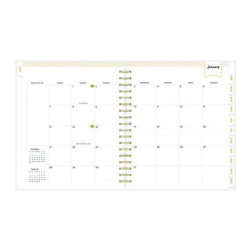 Product Details** Global Product Type Appointment Book/Personal Organizers Dated Yes Academic Year No Calendar Format Daily/Monthly Edition Year 2025 Calendar Term 12-Month (Jan to Dec) Binding Type Wire-O Color Family Multicolor Refillable No Calendar Spread Format One Day per Page (Mon-Fri),Two-Days per Page (Sat-Sun),One Month per Two-Page Spread Julian Dates No Size (Bound-Side First) 10 x 8 Binding Details Twin-Wire Cover Theme Horizontal Stripe Artwork Cover Color(s) Navy/White/Gold Cover Material(s) Polypropylene Binding Color(s) Gold Page Theme Gold Stripe Artwork Appointment Ruling 30-min, 6 AM to 8 PM (Mon-Fri),60-min, 6 AM to 8 PM (Sat-Sun) Calendar Reference Blocks One Past Month,One Future Month Separate Sections (6) Bonus Past Monthly Spreads (July-Dec),Four-Step Planning System,Holidays,Notes/Memos,Two-Year Reference Calendar Sheets per Calendar/Planner 190 Sheet Color(s) White/Gold Pocket Details (1) Clear Cover Pocket,(1) Two-Sided Paper Storage Pocket Reversible No Seasonal Availability Yes Product Biodegradability Indicator N Product Biodegradability in Days 0 Product Compostability Indicator N Package Includes (1) Sheet of Gold Foil Stickers Pre-Consumer Recycled Content Percent 0% Post-Consumer Recycled Content Percent 0% Total Recycled Content Percent 0% Country Of Origin CN Carton Weight 13 lbs. Carton Pack Quantity 6 EA Pack Quantity 0 UPC 699931914229 UNSPSC 44112005 Shipping Weight & Item Dimensions Weight 2.04 lbs. Length 10.16 in Height 0.79 in Width 9.25 in