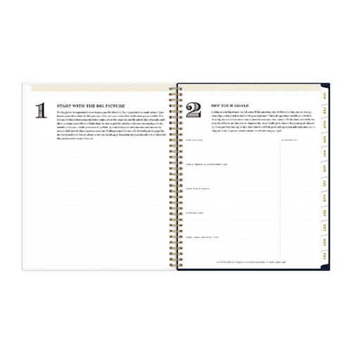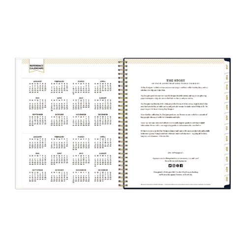 Product Details** Global Product Type Appointment Book/Personal Organizers Dated Yes Academic Year No Calendar Format Weekly/Monthly Edition Year 2025 Calendar Term 12-Month (Jan to Dec) Binding Type Wire-O Color Family Multicolor Refillable No Calendar Spread Format One Week per Two-Page Spread,One Month per Page Julian Dates No Size (Bound-Side First) 11 x 8.5 Binding Details Twin-Wire Cover Theme Floral Artwork Cover Color(s) Navy Floral Cover Material(s) Laminated Paperboard,Plastic Binding Color(s) Gold Page Theme Gold Stripe Artwork Appointment Ruling Open Scheduling Calendar Reference Blocks One Past Month,One Future Month Separate Sections (6) Bonus Past Monthly Spreads (July-Dec),Four-Step Planning System,Holidays,Notes/Memos,Two-Year Reference Calendar Sheets per Calendar/Planner 70 Sheet Color(s) White/Gold Pocket Details (1) Clear Cover Pocket,(1) Two-Sided Paper Storage Pocket Reversible No Seasonal Availability Yes Product Biodegradability Indicator N Product Biodegradability in Days 0 Product Compostability Indicator N Package Includes (1) Sheet of Gold Foil Stickers Pre-Consumer Recycled Content Percent 0% Post-Consumer Recycled Content Percent 0% Total Recycled Content Percent 0% Country Of Origin CN Carton Weight 7 lbs. Carton Pack Quantity 6 EA Pack Quantity 0 UPC 699931914106 UNSPSC 44112005 Shipping Weight & Item Dimensions Weight 1 lbs. Length 9.25 in Height 11.125 in Width 0.625 in