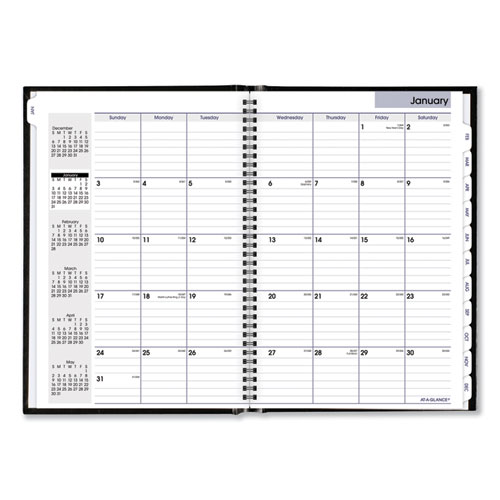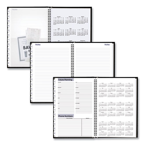 Product Details** Global Product Type Appointment Book/Personal Organizers Dated Yes Academic Year No Calendar Format Monthly Edition Year 2025 to 2027 Calendar Term 14-Month (Dec to Jan) Binding Type Wire-O Color Family Black Refillable No Calendar Spread Format One Month per Two-Page Spread Julian Dates Yes Size (Bound-Side First) 11.75 x 8 Binding Details Concealed Twin-Wire Cover Color(s) Black Cover Material(s) Coated Hardboard Calendar Reference Blocks Past Month,Current Month,Four Future Months Sheet Color(s) White Pocket Details (1) Interior Storage Pocket Reversible No Seasonal Availability Yes Product Biodegradability Indicator N Product Biodegradability in Days 0 Product Compostability Indicator N Pre-Consumer Recycled Content Percent 0% Post-Consumer Recycled Content Percent 0% Total Recycled Content Percent 0% Special Features Ruled Blocks Country Of Origin VN Carton Weight 13 lbs. Carton Pack Quantity 12 EA Pack Quantity 0 UPC 038576398825 UNSPSC 44112004 Shipping Weight & Item Dimensions Weight 1.01 lbs. Length 12.1 in Height 0.4 in Width 8.6 in