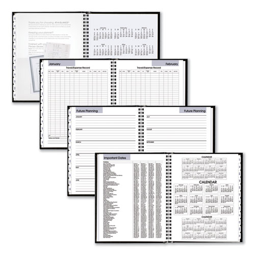 Product Details** Global Product Type Appointment Book/Personal Organizers Dated Yes Academic Year No Calendar Format Monthly Edition Year 2026 Calendar Term 12-Month (Jan to Dec) Binding Type Wire-O Color Family Black Refillable No Calendar Spread Format One Month per Two-Page Spread Julian Dates Yes Size (Bound-Side First) 8.5 x 7 Binding Details Concealed Twin-Wire Cover Color(s) Black Cover Material(s) Coated Hardboard Calendar Reference Blocks Past Month,Current Month,Four Future Months Separate Sections Important Contacts Section,Personal Information Pages,Travel & Expense Record Sheet Color(s) White Pocket Details (1) Interior Storage Pocket Reversible No Seasonal Availability Yes Product Biodegradability Indicator N Product Biodegradability in Days 0 Product Compostability Indicator N Pre-Consumer Recycled Content Percent 0% Post-Consumer Recycled Content Percent 0% Total Recycled Content Percent 0% Special Features Unruled Blocks-Memo section with notes space. Country Of Origin VN Carton Weight 10 lbs. Carton Pack Quantity 12 EA Pack Quantity 0 UPC 038576398726 UNSPSC 44112004 Shipping Weight & Item Dimensions Weight 0.674 lbs. Length 8.9 in Height 0.3 in Width 7.3 in