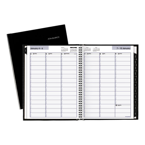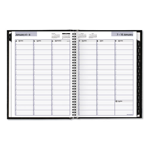 Hard cover is great for archiving. One week per two-page spread; past, current and two future months reference. Tabbed monthly dividers and storage pocket. High-quality paper features superior ink bleed resistance. Take charge of your schedule with classic style. Planner has a durable, black hardcover and concealed twin wire binding to help prevent snags and secure pages for prolonged use.