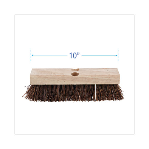 Narrow hardwood block brush head enables enhanced pressure transfer for more effective scrubbing, brushing, and moving debris. The two threaded handle holes allow you to easily screw in handles and switch the brush orientation to achieve more even bristle wear over time. Built with a strong and durable hardwood block head for use with threaded 1.13-inch diameter handles, which are sold separately.