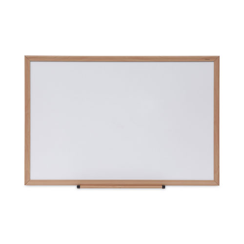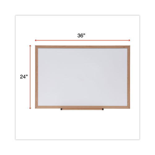 Product Details** Global Product Type Dry Erase Boards – Wall-Mount Board Surface Type(s) Dry Erase Magnetic Board Surface No Surface Material Melamine Surface Color White Dedicated Projection Screen No Flipchart Mounting System No Supports Custom Surface Formatting No Frame Material Medium Density Fiberboard (MDF) Frame Color/Finish Oak Finished Board Width 36″ Board Height 24″ Preformatted Board Surface No Product Biodegradability in Days 0 Package Includes (1) Marker/Eraser Tray,(1) Mounting Kit Pre-Consumer Recycled Content Percent 0% Post-Consumer Recycled Content Percent 0% Total Recycled Content Percent 0% Country Of Origin CN Carton Weight 8 lbs. Carton Pack Quantity 1 EA Pack Quantity 0 UPC 087547436196 UNSPSC 44111905 Shipping Weight & Item Dimensions Weight 7.89 lbs. Length 38.18 in Height 1.94 in Width 25.75 in Warranty Manufacturer’s limited one-year warranty.