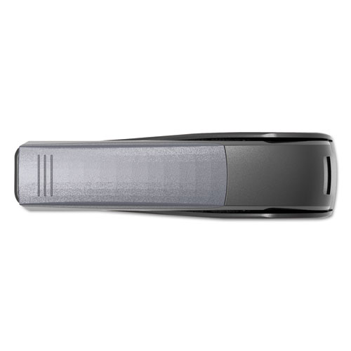 Staple quickly and neatly with this deluxe power stapler! This stapler requires less force and generates less noise than traditional power assist staplers. It is built with a nonskid base perfect for a desk and a flat clinch design that reduces paper stacks. Soft-touch handle adds to comfortable use of this product.