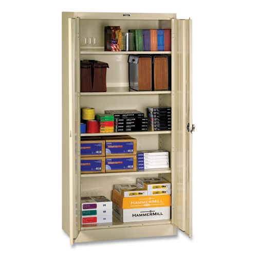 Deluxe Recessed Handle Storage Cabinet, 36w x 18d x 78h, PuttyDeluxe Recessed Handle Storage Cabinet, 36w x 18d x 78h, Putty