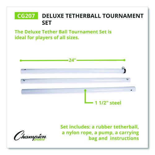 Featuring three telescoping poles that easily adjust the post to the appropriate height, the Champion Sports Deluxe Tetherball Tournament Set is ideal for players of all sizes. The tetherball set has a durable nylon rope that can stand up to powerful hits and a regulation size rubber tetherball that makes it appropriate for use in official tournaments. A pump is included to keep the tetherball properly inflated from match to match, and there’s a carrying bag to pack the set up neatly for transporting or storing it.