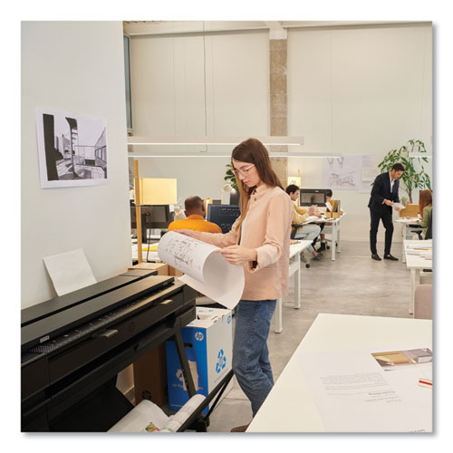 Maximize your team’s agility with the world’s easiest half-size and D size experience. Simplify multi-size printing with the integrated input tray. Streamline print workflows with HP Click. And meet office and environmental needs with this compact plotter. Do it all—print half-size print jobs using the integrated input tray, without manually changing from roll to sheets. Achieve high-quality CAD and renders across print sizes with pigment-based HP Flex Tech Inks. Avoid distractions with fewer ink interventions thanks to 130 mL/300 mL cartridges. Invest in a robust and compact plotter that’s designed to last. Save time with HP Click—print in fewer steps and avoid printing errors with print preview. Protect your printer and data from cyberthreats without any effort thanks to HP Wolf Pro Security. Stay on task with HP app—manage your device and print from virtually anywhere using your mobile or tablet.