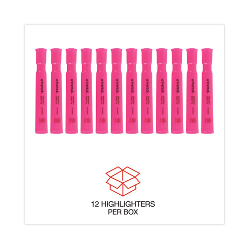 Product Details** Global Product Type Stick Highlighters Highlighter Style Round Tank Color Family Pink Highlighter Tip Type Chisel Highlighters Erasable Ink No Retractable No Pocket Clip Indicator No Highlighter Ink Color Fluorescent Pink Highlighter Barrel Color Pink Grip Type Tapered Product Biodegradability Indicator N Product Biodegradability in Days 0 Product Compostability Indicator N Compliance Standards ACMI AP Non-Toxic Certified Pre-Consumer Recycled Content Percent 0% Post-Consumer Recycled Content Percent 0% Total Recycled Content Percent 0% Country Of Origin CN Carton Weight 6 lbs. Carton Pack Quantity 12 DZ Pack Quantity 0 UPC 087547088654 UNSPSC 44121716 Shipping Weight & Item Dimensions Weight 0.45 lbs. Length 5.28 in Height 1.56 in Width 4.69 in Warranty Manufacturer’s limited one-year warranty.