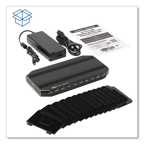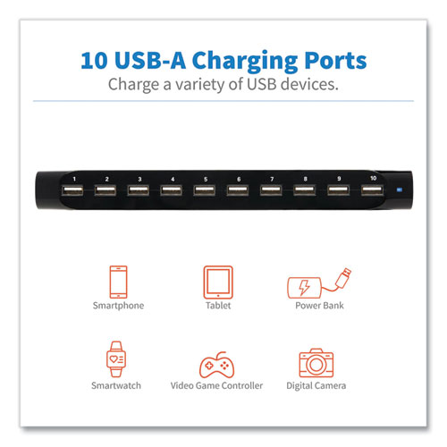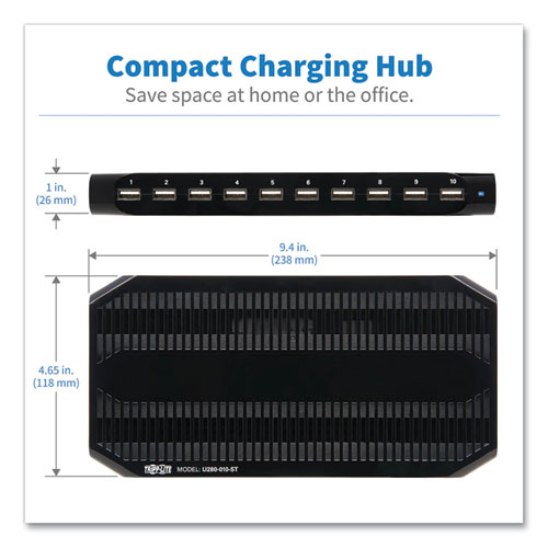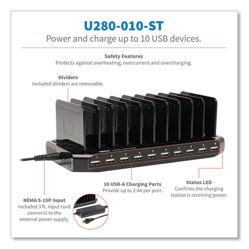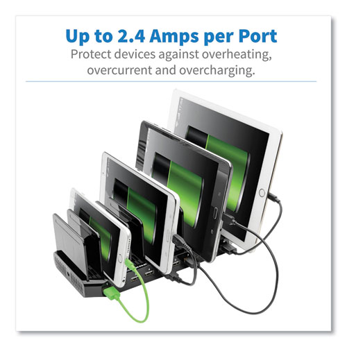 Provides plenty of ports and power to keep all your devices at 100% capacity. No more peering behind furniture to find an available outlet or unplugging one device to charge another. You can charge tablets, cell phones, laptops and other devices at the same time. It doesn’t require a computer, so you can take it anywhere AC power is available. To charge your USB devices, simply plug the unit to an outlet, and connect your devices to the available USB ports. Charger protects against overheating, overcurrent and overcharging-in fact, it stops charging as soon as your devices’ batteries are at full capacity. A front LED indicates the unit is turned on and receiving AC power. Comes with adjustable dividers to neatly organize your devices.
