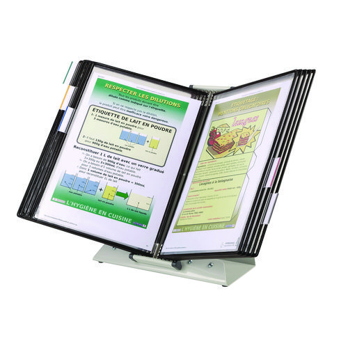 Whether at your desk, in a workshop or at a workstation, maximize your productivity by placing important information at your fingertips. Includes desk base unit, two universal mounting brackets, required hardware and 20 assorted wire reinforced pockets. Snap on index tabs with color coded inserts help you find information quickly. Great for production workshops, factories, warehouses, machines, manufacturing lines, and assembly stations.