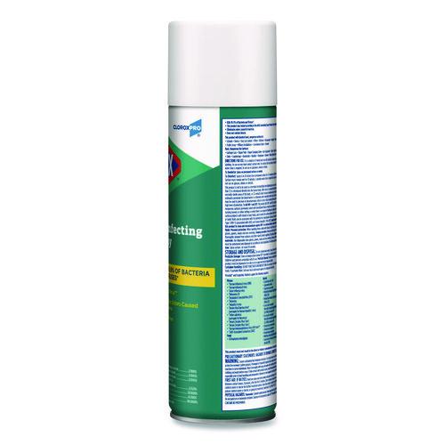 Fight germs and odor in your facility with Clorox Disinfecting Spray that kills 99.9% of bacteria and viruses. Tested according to the AOAC Germicidal Spray Product Test for disinfectants, this trusted product eliminates odors caused by bacteria and kills flu virus. It is EPA registered to kill as many as 64 microorganisms and it kills most bacteria on its EPA Master Label in three minutes. With incredible versatility, Clorox Disinfecting Spray can be used on a wide variety of hard surfaces like garbage cans, diaper pails, changing tables, gym equipment, tables, toilet seats, faucets, sinks, countertops, doorknobs, telephones and more. From CloroxPro, this disinfecting spray is ideal for use in schools, dorms, day care centers, offices, kitchens, restaurants, hospitals, hotels, health clubs, public areas and more.kills 99.9% of bacteria and viruses on hard nonporous surfaces.