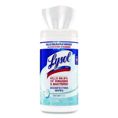 Disinfecting Wipes, 1-Ply, 7 x 7.25, Crisp Linen, White, 80 Wipes/CanisterDisinfecting Wipes, 1-Ply, 7 x 7.25, Crisp Linen, White, 80 Wipes/Canister