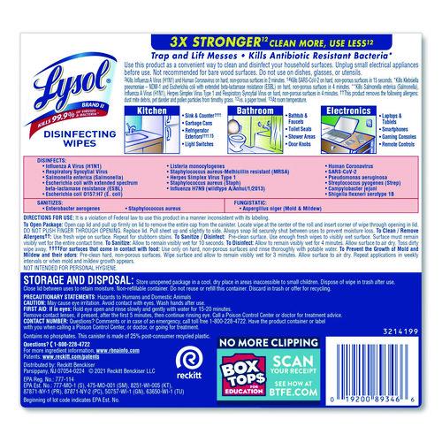 Product Details** Global Product Type Cleaner/Detergent Wet Wipes Towel/Wipe Type Cleaning/Disinfecting Wipes Material(s) Nonwoven Fiber Number of Plies 1 Number of Towels/Wipes Per Container 80 Scent Crisp Linen® Color(s) White Applicable Material Linoleum,Metal,Plastic,Porcelain,Stainless Steel,Tile Chemical Compound Alkyl (50%C14, 40%C12, 10%C16) Dimethyl Benzyl Ammonium Chlorides Dirt Types Bacteria,Dirt,Dust,Everyday Messes,Food Spills,Viruses Length 7.25″ Width 7″ Product Packaging Canister Application Appliances,Cabinets,Counters,Door Knobs,Floors,Garbage Cans,Light Switches,Remote Controls,Smartphones,Tablets,Telephones,Toilets Product Biodegradability Indicator N Product Biodegradability in Days 0 Product Compostability Indicator N Compliance Standards EPA Reg. No. 777-114,EPA List N,Complies with the VOC (Volatile Organic Compound) limits, including California,Fully registered with the Federal EPA and each of the 50 State EPA agencies (and the District of Columbia). Each product bears an EPA Registration Number on the product label,Complies with TSCA regulations,USDA Certified Biobased Product 55% Pre-Consumer Recycled Content Percent 0% Post-Consumer Recycled Content Percent 0% Total Recycled Content Percent 0% Country Of Origin US Carton Weight 11 lbs. Carton Pack Quantity 6 EA Pack Quantity 0 UPC 019200893466 UNSPSC 47131803 Shipping Weight & Item Dimensions Weight 1.7 lbs. Length 4.125 in Height 8.5 in Width 4.125 in