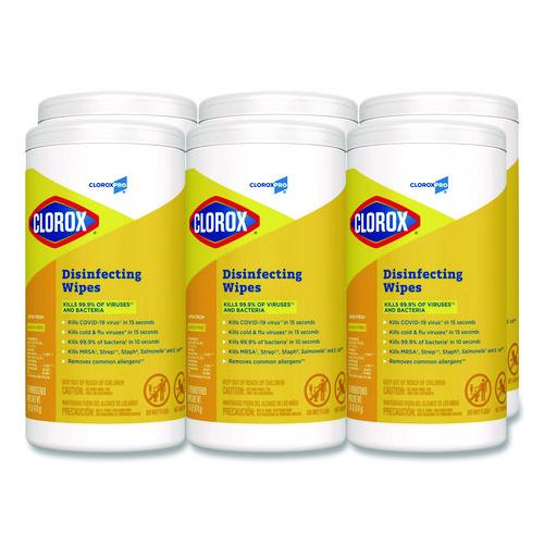 Disinfecting Wipes, 1-Ply, 7 x 8, Lemon Fresh, White, 75/Canister, 6/CartonDisinfecting Wipes, 1-Ply, 7 x 8, Lemon Fresh, White, 75/Canister, 6/Carton