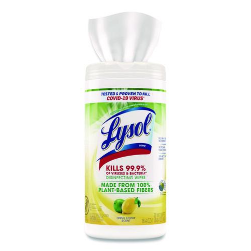 Clean tough everyday messes and uphold sustainability goals with a wipe made from 100% plant-based fibers. Lysol® Plant-Based Fiber Disinfecting Wipes disinfect against a broad range of germs and antibiotic-resistant bacteria when used as directed. The effective citric acid formula kills 99.9% of viruses and bacteria, including the virus that causes COVID-19 in 15 seconds when used as directed on hard, nonporous surfaces. Help protect students, customers, and staff with plant-based wipes that are tested and proven to kill Norovirus and Rhinovirus. Help reduce the spread of disruptive cold and flu viruses in classrooms, waiting rooms, break rooms, check-in desks, locker rooms and restrooms.