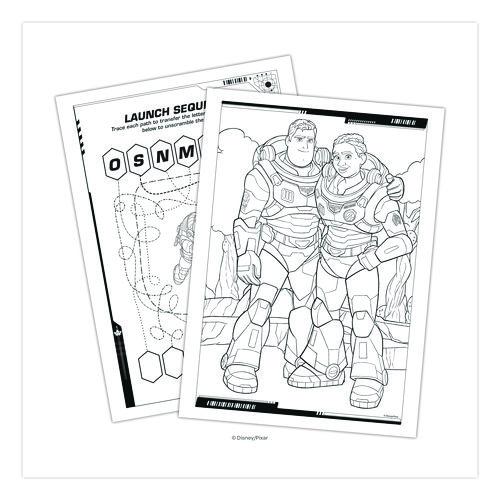 Join Buzz, Alisha, Sox and the crew on a coloring adventure with the Disney® Pixar® Lightyear Jumbo Coloring & Activity Book. Chock-full of coloring pages, games and puzzles along with a bonus punch-out, standup character lifted from the animated science-fiction, action-adventure film, this book provides plenty of fun activities to keep creative children engaged. Afterwards, the coloring-pages’ Tear and Share® design makes showcasing your little artist’s masterpieces a snap. Officially licensed product.