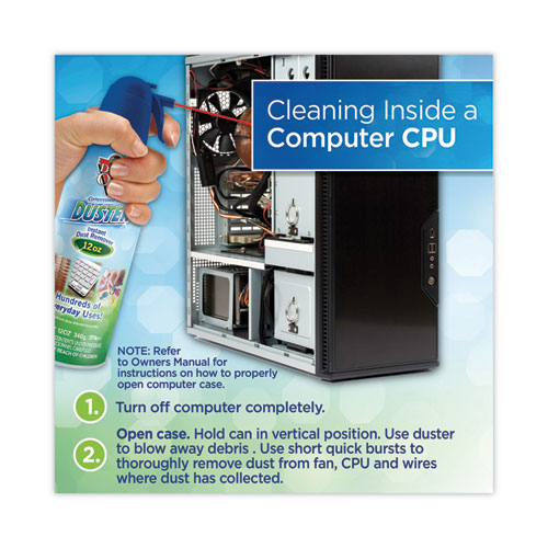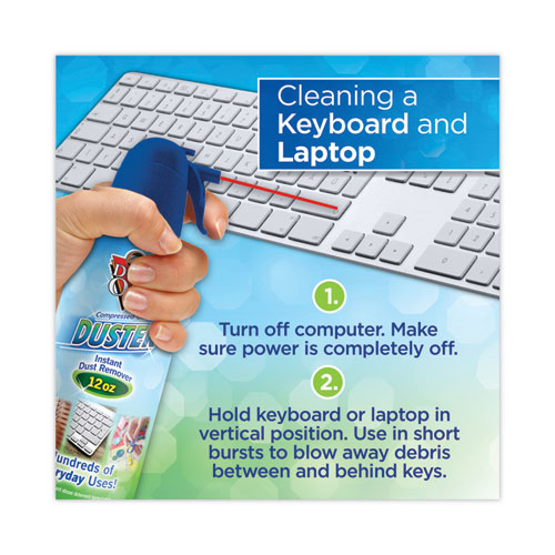 Dust-Off disposable dusters provide potent dust-removing power for practically any task. Ideal for cleaning technology like keyboards, laptops and CPUs. But it’s not just for electronics! Dust-Off dusters are also great for cleaning items in the home such as collectibles, window blinds, lamp shades, craft projects and sewing machines. Each duster includes extension tube to get in hard-to-reach places. Contains a bitterant to help discourage inhalant abuse.