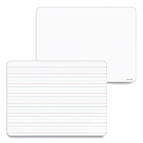 An essential teaching tool for every teacher or parent. Provide children with what they need to practice printing block letters or writing cursive as well as to complete math problems, draw pictures and express their creativity. Reusable, dry-erase surface is ideal for both work and play, whether your children are at home, at school or on the go. In the classroom, it’s perfect for situations where teachers may wish to ask students to solve problems individually and hold up their answers, high, to share with the teacher and the classroom, once the task is complete. High-quality surface is ghost- and fade-resistant to ensure longevity, no matter how frequently the board may be used. Double-sided format is ruled for handwriting-practice on the front and unruled for math, art and more on the reverse. Rounded corners help ensure safe use by children of all ages. Although all dry erase markers work well with this board, U Brands dry erase markers provide the ultimate writing and eras-ability experience (markers and erasers are sold separately).