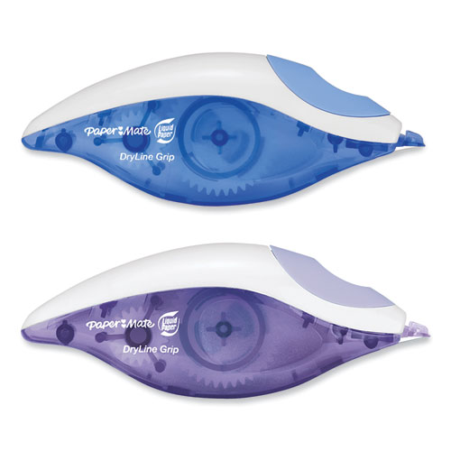 Paper Mate Liquid Paper DryLine Grip Correction Tape lays down smoothly and corrects instantly–no drying necessary. Ideal for correcting single or multiple lines, this strong polymer-back tape quickly fixes mistakes without making a mess. This correction tape resists breakage and tearing, allowing you to neatly correct long passages of text. It also applies dry, so you can copy, fax, edit, or type immediately after application.