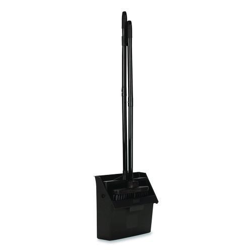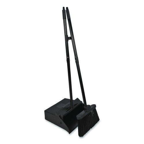 The days of dirt and debris harboring on your floors are numbered once you use our Duo-Pan™ upright dustpan and broom. The angled bristles of the broom expose those hard-to-reach areas to the dustpan that effortlessly hugs the floor for efficient and quicker cleaning without a trail of dirt left behind. Transport the mess from dustpan to trashcan—the pivoting design shifts the pan upwards, locking the mess in and reducing the likelihood of spreading germs elsewhere. Discarding trash is effortless with its rotating notched yoke enabling hands-free disposal. Increased hygiene will be evident—customers will be swept away by your clean floors when using our duo-sweep dustpan and broom.
