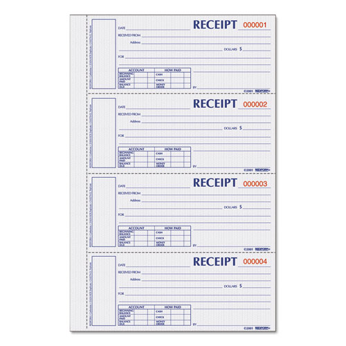 Durable Hardcover Numbered Money Receipt Book, Three-Part Carbonless, 6.88 x 2.75, 4 Forms/Sheet, 200 Forms TotalDurable Hardcover Numbered Money Receipt Book, Three-Part Carbonless, 6.88 x 2.75, 4 Forms/Sheet, 200 Forms Total