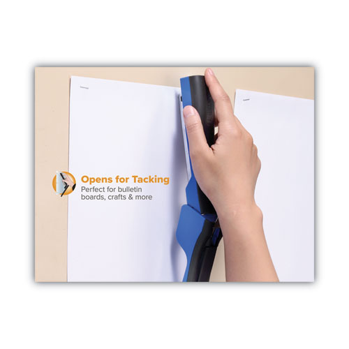 Product Details** Global Product Type Full-Size Desktop Staplers High Capacity Stapling No Flat Clinch Plate No Power Source(s) Manual Tacking Yes Color Family Blue Staple Loading Top Staple Capacity Full Strip (210 Staples) Type of Staple Used Standard Sheet Capacity 20 Replacement Staples Bostitch® SBS191/4CP Leg Size 0.25″ Crown Size 0.5″ Color(s) Blue Material(s) Plastic,Metal,Rubber Product Biodegradability Indicator N Product Biodegradability in Days 0 Product Compostability Indicator N Pre-Consumer Recycled Content Percent 0% Post-Consumer Recycled Content Percent 0% Total Recycled Content Percent 0% Footnote 1 All sheet capacities are based on 20-lb. bond Country Of Origin CN Carton Weight 4 lbs. Carton Pack Quantity 6 EA Pack Quantity 0 UPC 077914056706 UNSPSC 44121615 Shipping Weight & Item Dimensions Weight 0.44 lbs. Length 8.27 in Height 1.54 in Width 3.39 in Warranty Manufacturer’s limited lifetime warranty.