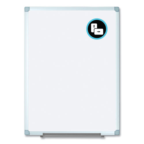 MasterVision® Earth Silver Easy Clean Dry Erase Boards are a solution that combine superior writing and cleaning performance with professional Maya frame quality. Made from recycled and recyclable materials, these non-magnetic boards are double-sided to provide twice the life of standard melamine whiteboards. Both board surfaces are suitable for moderate use and can easily be flipped when necessary. Four-corner system allows for both vertical and horizontal mounting, offering versatility when reconfiguring an office and where wall space might be limited. An adjustable accessory rail offers a convenient way to keep your markers within easy reach. Sturdy, heavy-gauge aluminum frame.