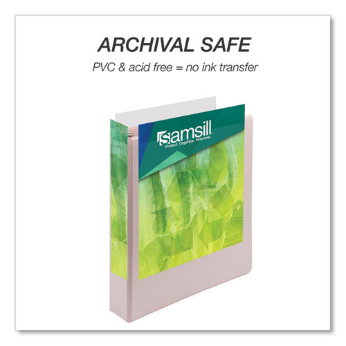 Three ring binders are a must have organization tool for back to school, offices and homes. The biobased presentation view binders are not only well-constructed for holding paper but also have both biobased and recycled properties that make them a great sustainability solution. These USDA certified binders are made with a percentage of biobased material and come with a cover made of plant based renewable plastic. This 3-ring binder has durable chipboard made of fully recycled material. Biobased content is carefully tested using ASTM D-6866 standards. The first and only biobased presentation office and school binder on the market can be used for storing documents and loose items with considerable ease for the perfect counter organizer. This d-ring binder holds three-hole-punched paper (sheet size: 8.5 x 11). The rings are sturdy to withstand years of use and easy to open and close. It features two clear inside horizontal pockets for additional storage and organization of loose documents and non-punched papers. Non-stick materials are used for making this product, which prevents transfer of ink or lifting copy when materials are inserted in the cover or placed inside. A clear overlay on the front, back, and spine of the binder gives full control and flexibility over customization of presentations, organizational projects, office reports, class projects, and more. Perfect for creating a custom desk reference system for weekly or monthly office reports, multiple classes at school, or other unique personal or professional projects.