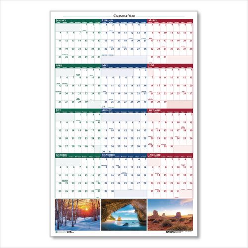 Product Details** Global Product Type Wall Calendars Dated Yes Academic Year No Calendar Format Yearly Edition Year 2025 Calendar Term 12-Month (Jan to Dec) Color Family White Refillable No Calendar Spread Format Horizontal: One Year per Page,Vertical: One Year per Page Julian Dates Yes Size (Bound-Side First) 32 x 48 Page Theme Nature Scene Photography Sheet Color(s) White/Multicolor Hanger Style Hang Tabs Reversible Yes Seasonal Availability Yes Product Biodegradability Indicator N Product Biodegradability in Days 0 Product Compostability Indicator N Green Information Printed with soy-based inks. Package Includes (1) Black Wet Erase Marker,(1) Set of Wall Hanger Tabs Pre-Consumer Recycled Content Percent 0% Post-Consumer Recycled Content Percent 100% Total Recycled Content Percent 100% Disclaimer Statement This product was made using wood sourced from a certified managed forest. Country Of Origin US Carton Weight 4 lbs. Carton Pack Quantity 6 EA Pack Quantity 0 UPC 040983983372 UNSPSC 44111901 Shipping Weight & Item Dimensions Weight 0.5 lbs. Length 37.5 in Height 3.25 in Width 3.25 in