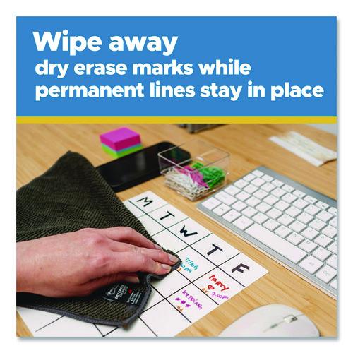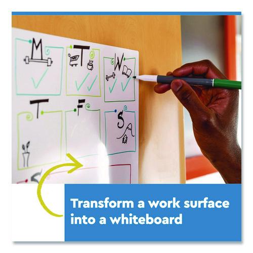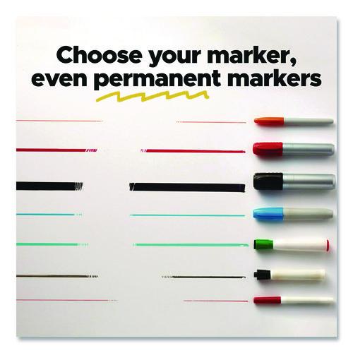Create a stain-proof dry erase whiteboard you can use with dry erase and permanent markers. Create templates to track due dates, action items, agendas, homework assignments and more. Go ahead, use permanent markers to prevent accidental smearing or erasing. For example, create a calendar outline in permanent marker, then use dry erase markers for adding individual day tasks. Wipe off dry erase markers, while the calendar created in permanent marker stays intact. When it’s time to change, the permanent marker wipes away with just water. Allows you the flexibility to instantly transform cabinets, walls, desks and work surfaces into a whiteboard and the freedom to write with permanent markers without stains.